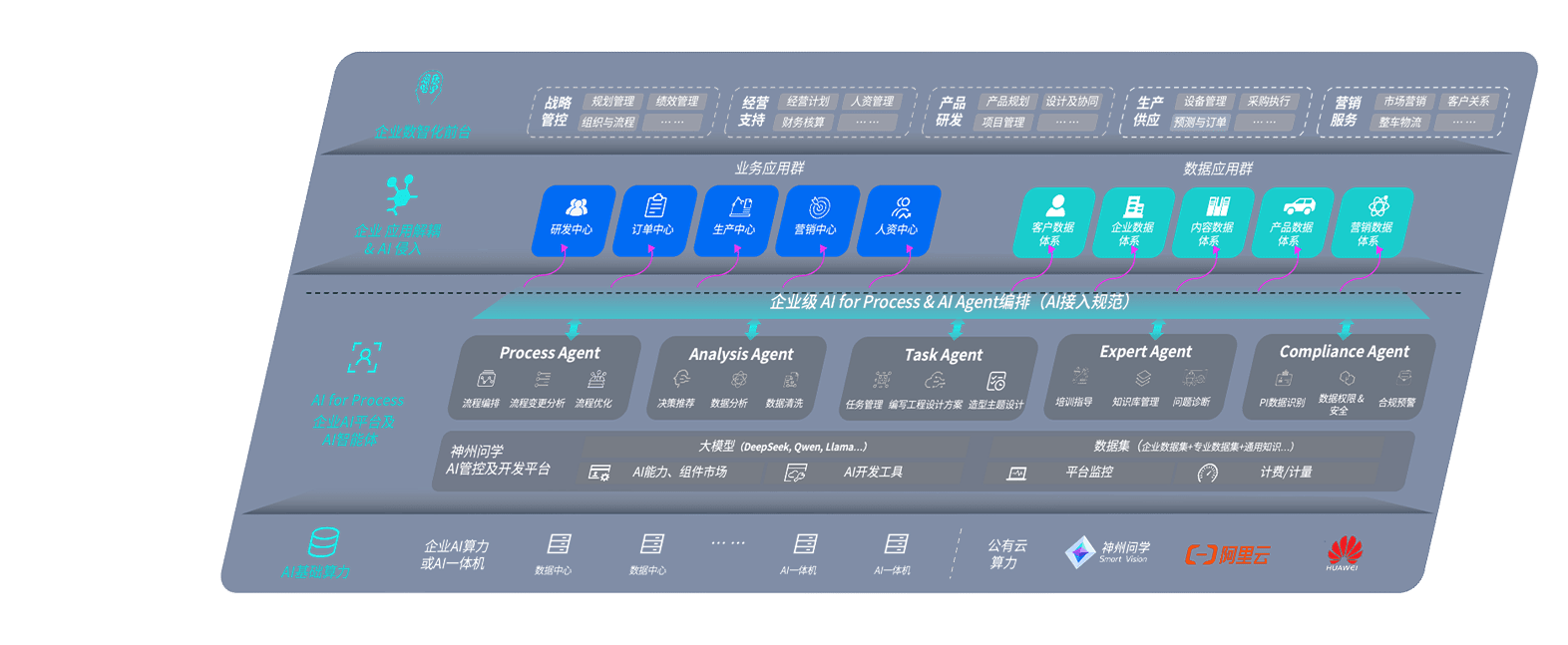 恒星集团问学智车解决方案是一套基于AI技术的汽车行业智能化系统,,,覆盖从底层算力到顶层AI应用的全栈方案。。方案由算力层、、、模型层和应用层组成:算力层,,,方案支持多种一体机配置,,,,具备云端灵活部署、、、、多云适配以及动态优化计算资源的能力;模型层,,,,恒星集团问学平台版提供了企业级AI应用一站式构建与管理平台,,,,支持基于后训练强化技术的汽车企业专属模型的训练、、、、评测和运营;应用层,,,,恒星集团问学DeepSeek版提供包括超级员工、、智能招采、、智能营销、、、智能客服、、、、AI for BI等一系列解决方案,,可助力汽车行业实现数字化转型,,,让管理更智能、、、响应更敏捷。。